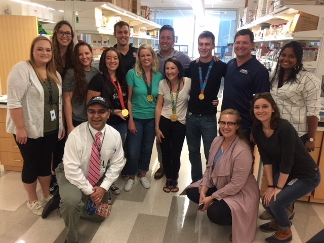 US Olympic Gold Medal Winners touring the Division of Oncology for the Swim Across America, St. Louis fundraiser – August 2018